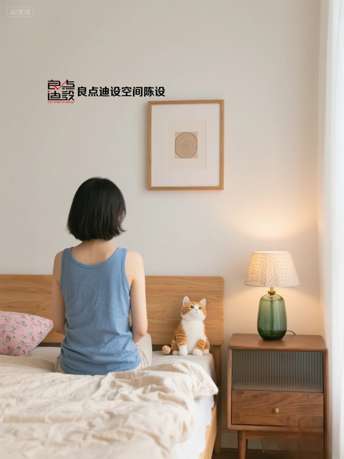客臥則采用紅棕色作為整體色調,低飽和度做舊質感的紅棕色背景墻搭配復古做舊的原木質感,復古大方。